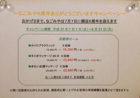 ☆カイロプラクティックとタイ式マッサージのお店 なごみや http://nagomiya.ehoh.net/
