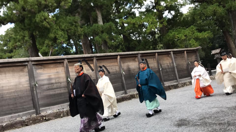 でっかい御鑰が中から出てきたので、あ、鍵を閉めたんだな、そろそろ儀式も終わりだな、というタイミングで、衛士さんの誘導があり、神職さんの退場列を拝見できる場所も陣取ることできました。