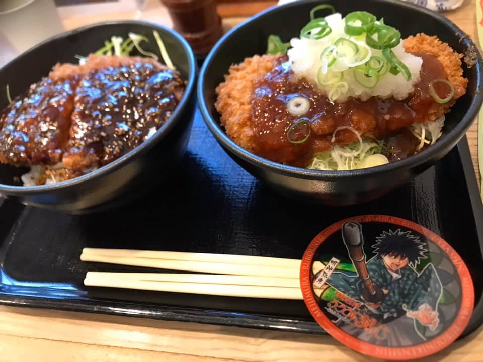 村内の各飲食店でコラボメニューがあるのですが、目星をつけておいためん処で、弥彦とコラボのおろし牛カツ丼と通常メニューの味噌カツ丼を半分こ。