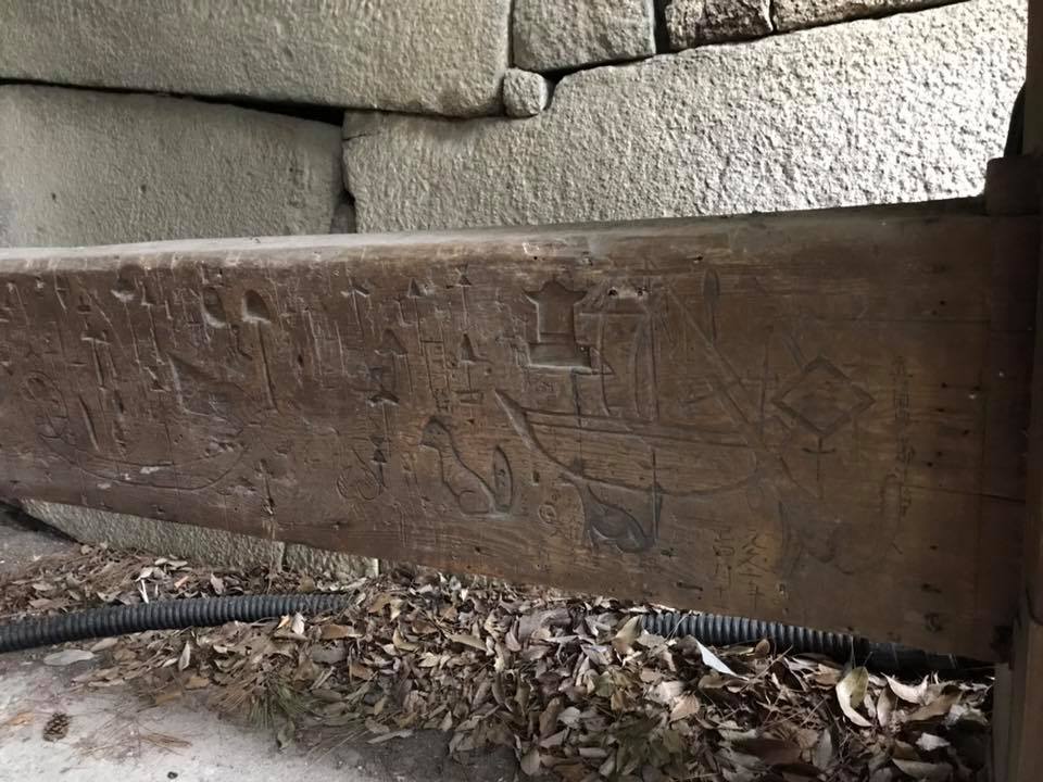 名前やら住所やら日付やらイラスト(?)やらが削ってあります。