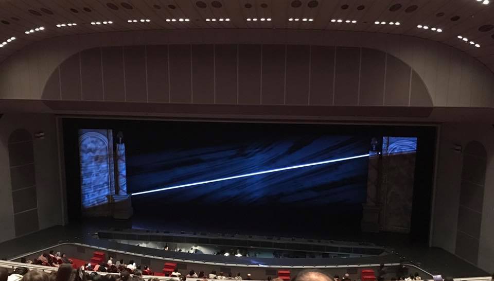 とりあえず、開演前に現れる、この紗幕も本編で大活躍。