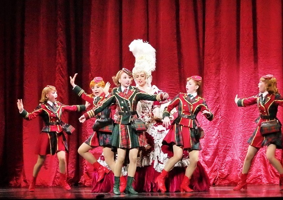 現代アイドル風の衣装で歌い踊る若手娘役さんの中に、劇中劇でのマリーアントワネット風のドレスとカツラで飛び込んできます。