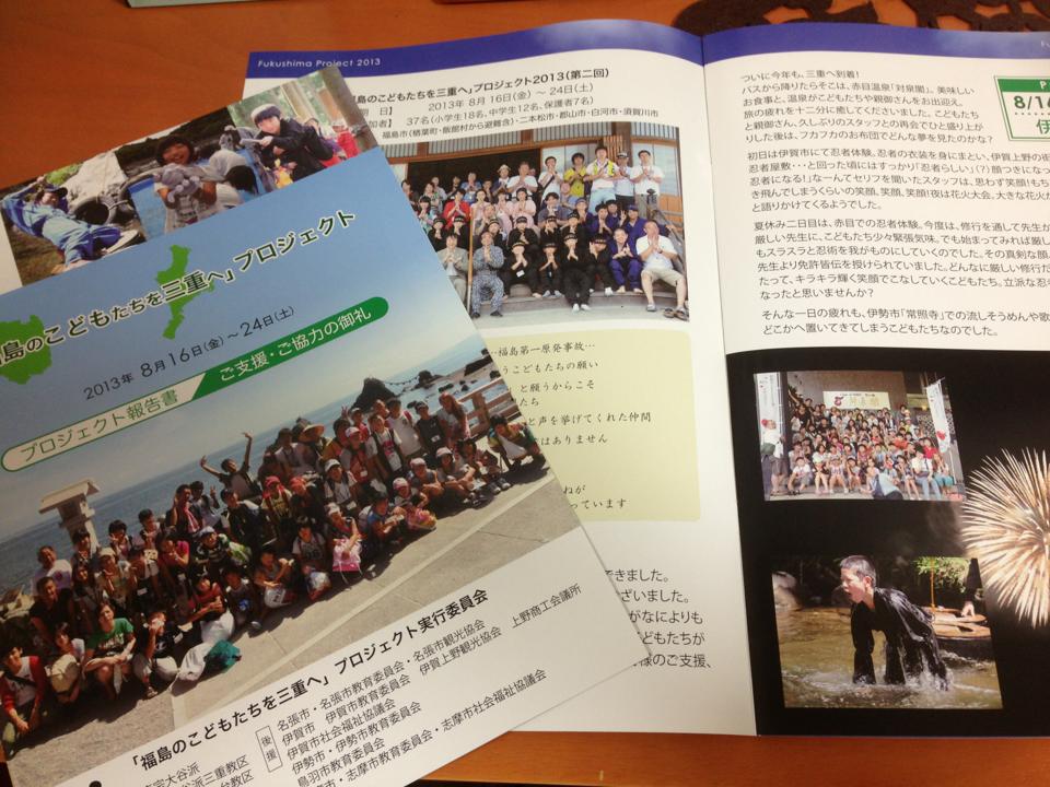 店長の、小・中・高の同級生・大橋くんが代表を務める「福島のこどもたちを三重へ」プロジェクトの2013年報告書が届きました(超ご近所なので、大橋くん自ら届けてくれました)。
