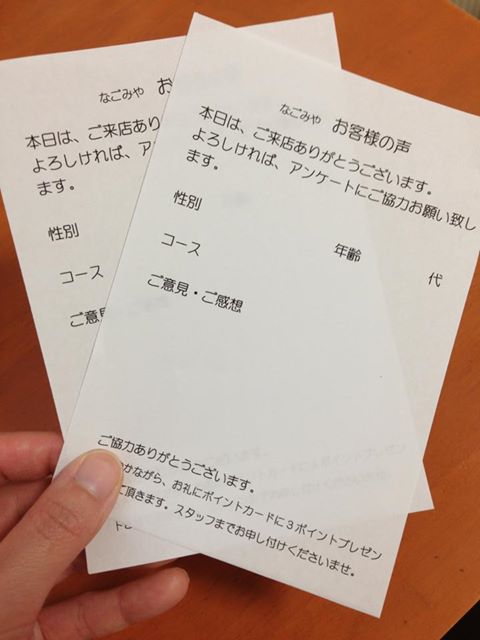 なごみやでは、新しく、「お客様の声」を伺うことになりました。