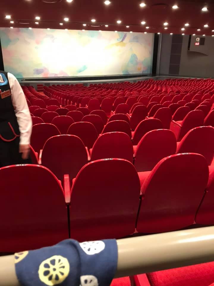 見え方は、さすがにちょっと遠くて、視力の悪い店長には不利ですが、1列目で立っている分、視界を邪魔するものがなく広々と舞台全体が観られます。