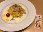 ベルばらカフェにて、恐れ多いオスカル&アンドレがプリントされたチーズの残骸と見つめあうこと数分。